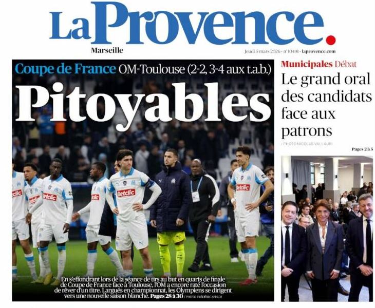 Au lendemain de cette désillusion, les commentaires de la presse marseillaise sont particulièrement critiques. En une de son édition du jour, La Provence titre ainsi « Pitoyables ». Le quotidien estime que l’OM a « encore raté l’occasion de rêver d’un titre » et souligne que les Olympiens, désormais distancés dans la course au championnat, se dirigent vers « une nouvelle saison blanche ».