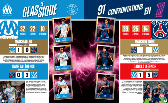 Pour le Classique, l’album ne se contente pas de chiffres : il raconte des histoires. Les exploits de Drogba, les inspirations de Payet, et tous ces moments qui ont fait vibrer le Vélodrome et façonné la légende marseillaise. On a l’impression de revivre chaque match comme si on y était.